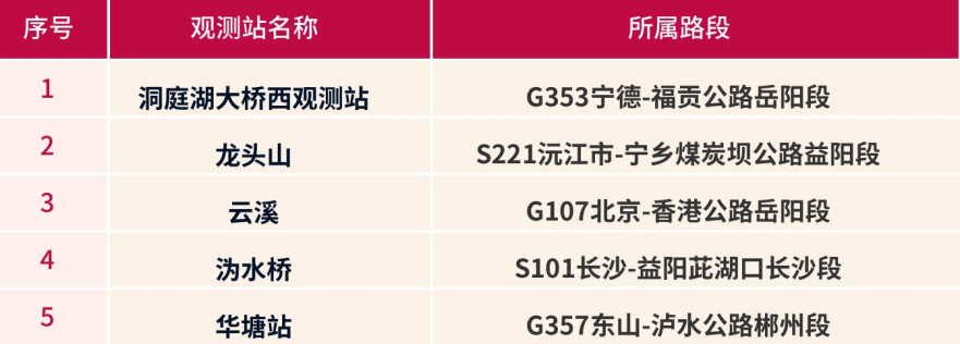 预计普通国省道流量主要分布于城市周边出入口,断面流量排名前五的观测站为G353洞庭湖大桥西观测站、S221龙头山、G107云溪、S101沩水桥、G357华塘站。