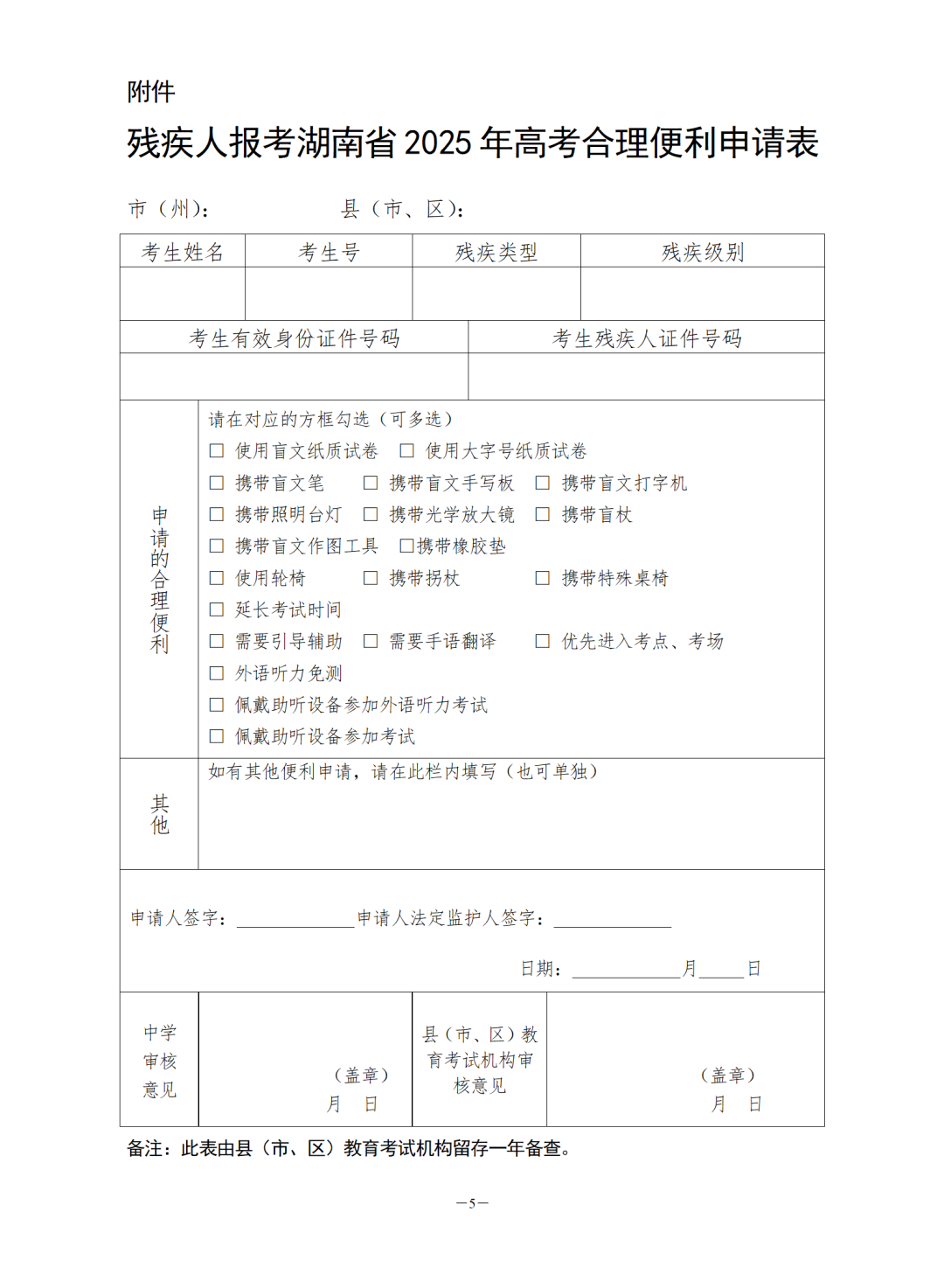 附件:残疾人报考湖南省2025年高考合理便利申请表
