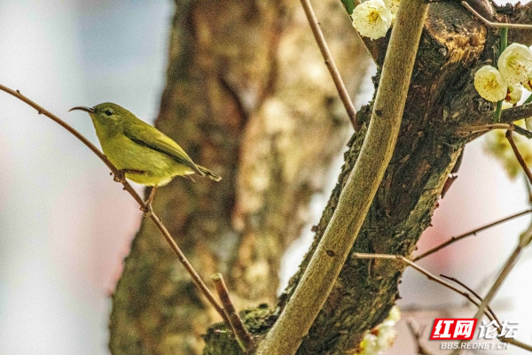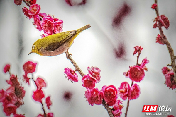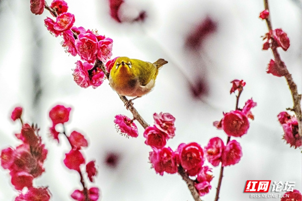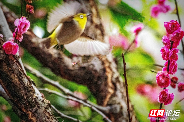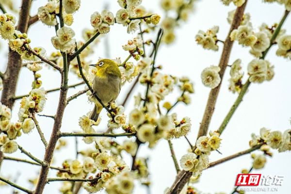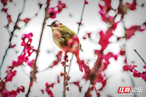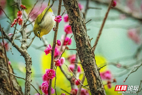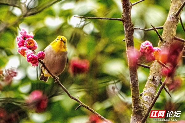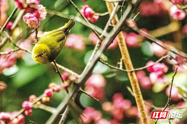 ▲图说:连日来,春雨绵绵。湖南省通道侗族自治县县城双江河畔的绿化风光带上,柳树桃花开始冒点嫩芽,红梅黄梅繁花似锦。引来了蝶舞蜂飞,鸟儿欢唱。