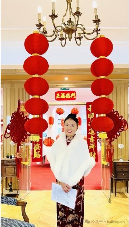 晚宴开场,萧遐用流利的法语向宾客致辞:“春节不仅是家庭团圆的时刻,更承载着中国人对自然更迭的敬畏与对新年的美好祈愿。”她提到春节被列入非遗的意义:“这标志着春节成为全人类共同文化遗产。作为中国人,我们自豪地拥有44项非遗名录,占世界首位。”现场宾客争相模仿中文贺词“新年快乐”“恭喜发财”,笑声与掌声此起彼伏。