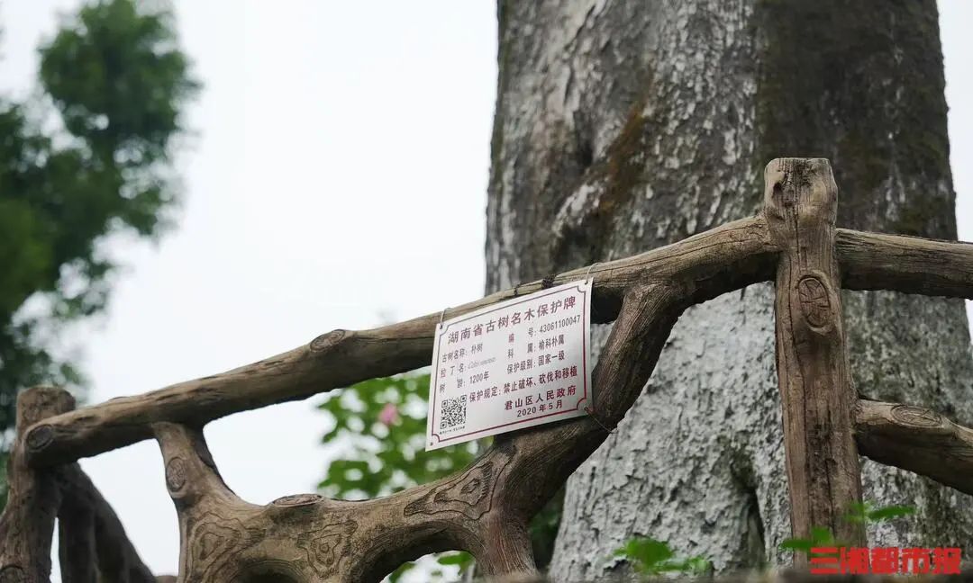 如今大朴树,挂上了古树名木保护牌,君山岛景区也采取了许多措施来保护它。