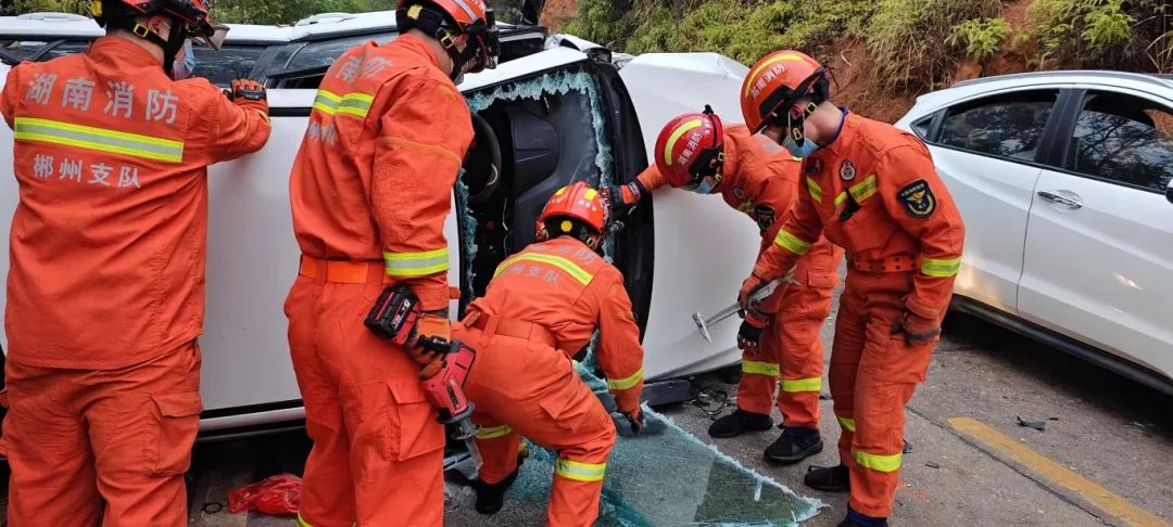 2月1日,湖南省郴州市宜章县一路段,两台小轿车相撞致使其中一辆小轿车发生侧翻,副驾驶一人被困。消防员迅速赶赴现场展开救援,使用垫木对车辆进行稳固的同时,利用撬棍、电动剪扩钳等破拆工具组对前挡风玻璃进行破拆,经过约15分钟的紧急营救,被困司机被成功救出。目前,事故具体原因在进一步调查中。