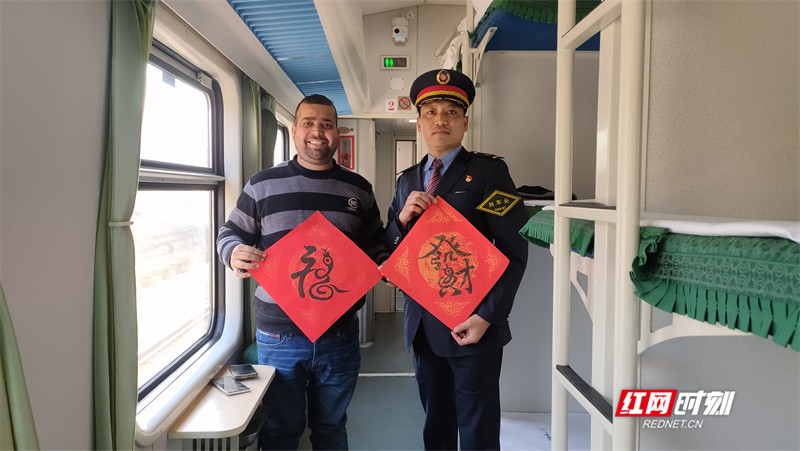 “ 2025年是中国的蛇年,这是我自己亲自手写的蛇福,就是把蛇的神态,和中国书法‘福’字结合,设计出来的。”当列车长刘广向旅客介绍,2号车厢11组下铺来自的印度国际友人维卡斯·库马尔说:“Yes,this very good.”“中国在你心目中,总体印象是怎样的?”维卡斯·库马尔说:“中国非常安全,环境干净,人民友好,交通非常便利,还有很多其他好处。”“你对中国铁路体验感觉怎么样?”工作人员询问。“中国铁路很神奇,我也乘坐过快速列车和普通列车,它们都很棒。”维卡斯·库马尔称赞说。