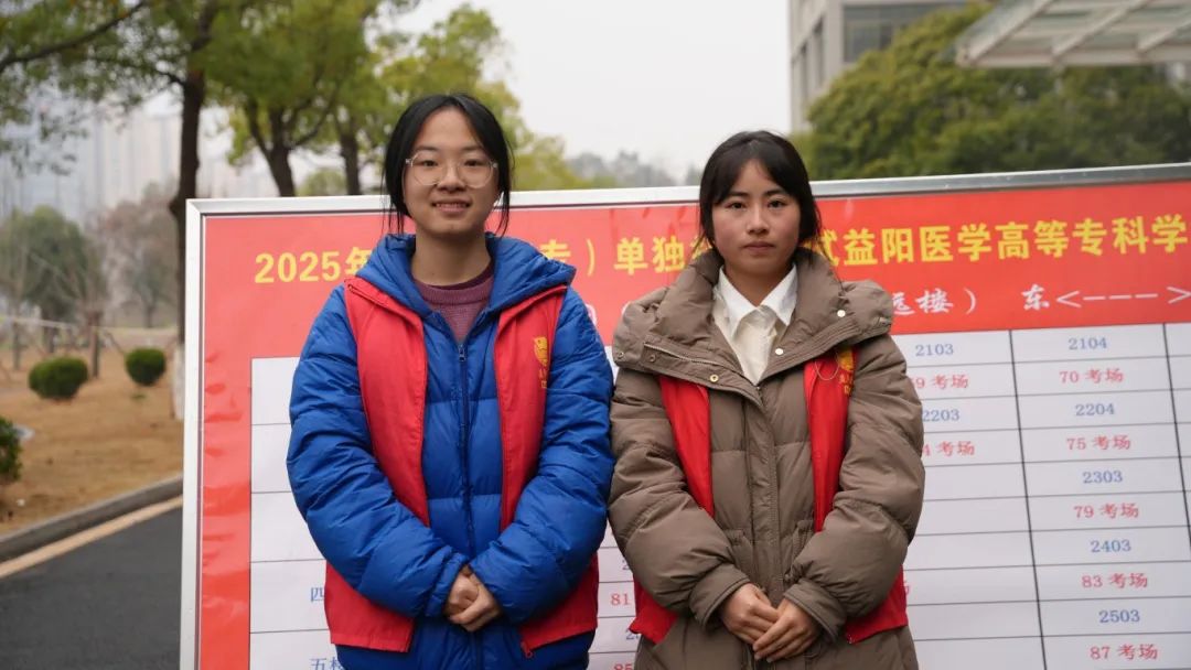 考生吴君院(右):我选择益阳医专是因为学姐白思宇(左)的推荐,她去年拿到了世界职业院校技能竞赛健康养老照护赛项银奖,获得了免试专升本的机会。我也想像学姐一样,精进护理技能,在比赛里发光发热。