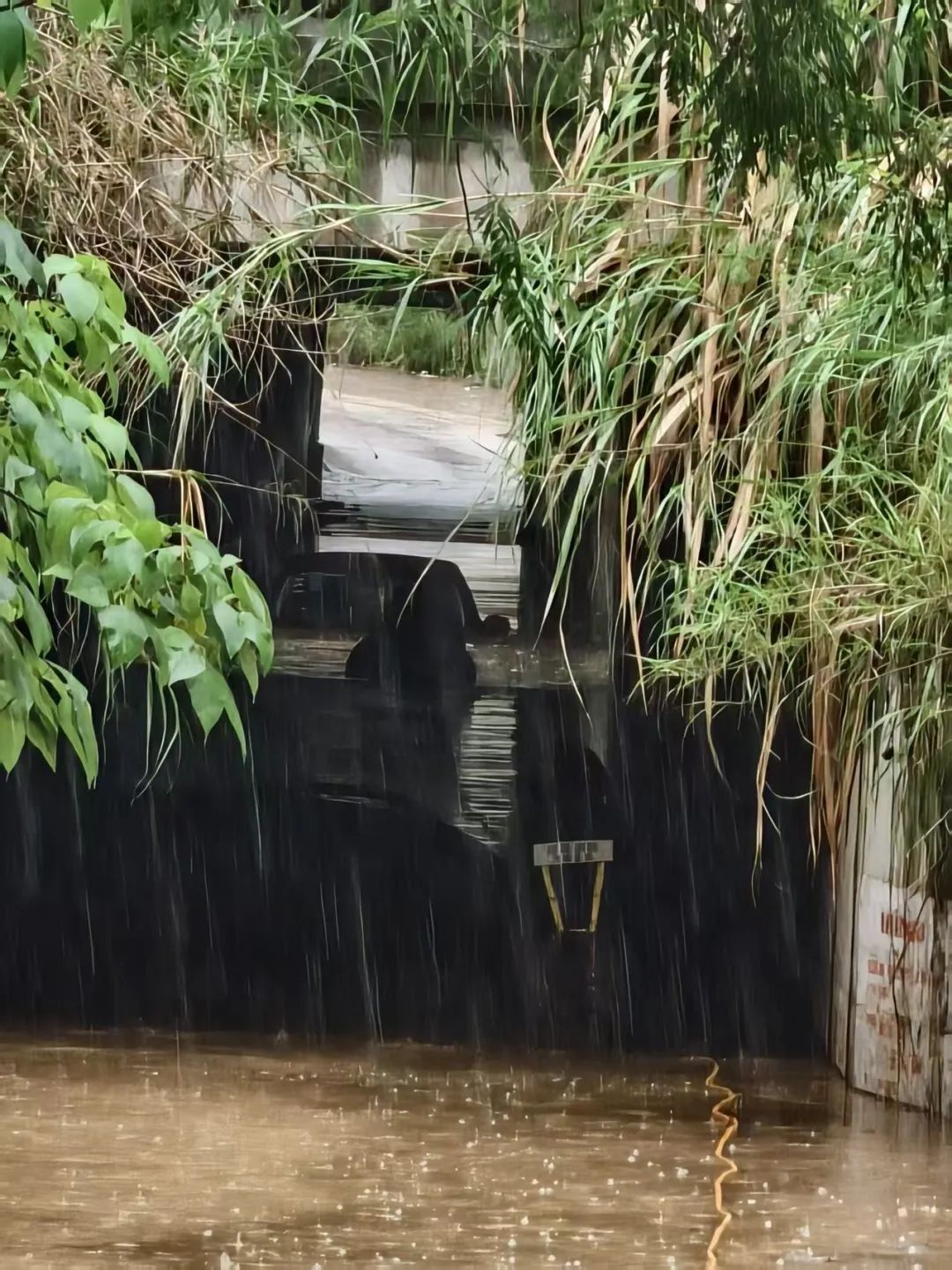 被困在涵洞积水中