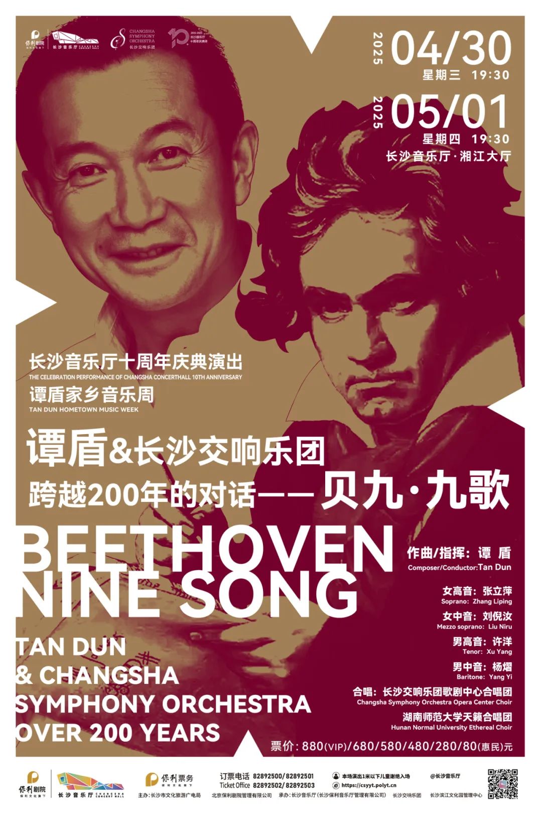 4月30日-5月1日,长沙音乐厅十周年庆典,谭盾家乡音乐周,奥斯卡金像奖最佳原创音乐奖得主谭盾×贝多芬封神200年《第九交响曲》终极乐章“炸翻”湘江!