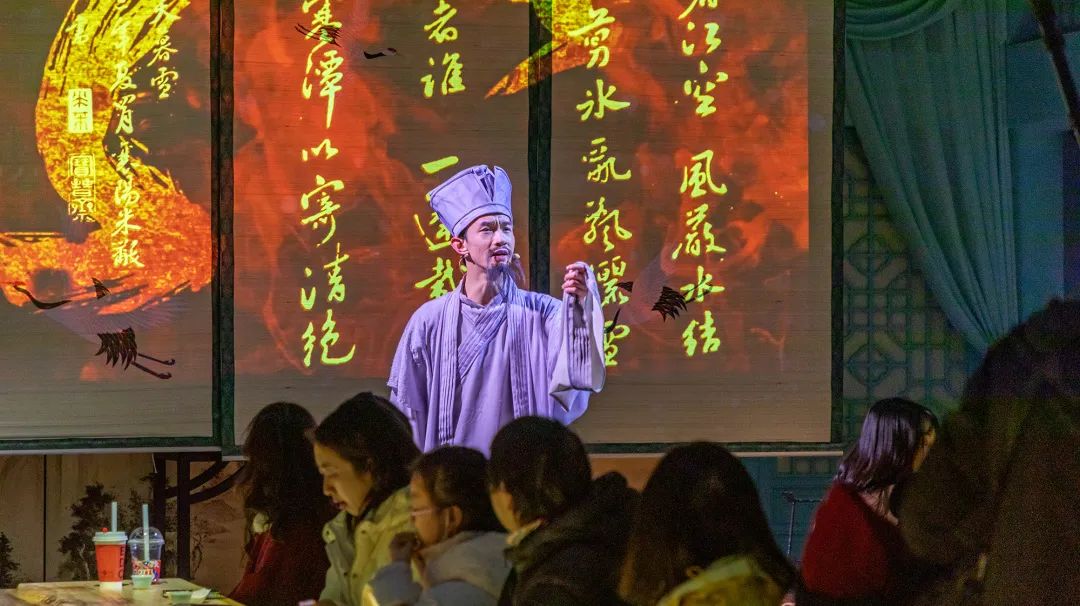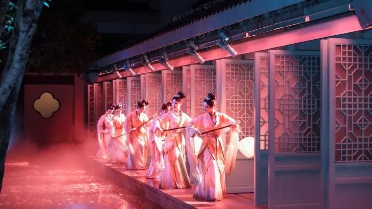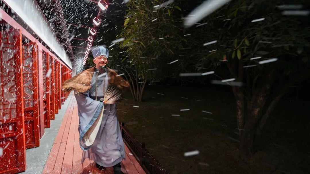 光影构筑一座时空之门,穿行拱极楼、江神庙之间,转角邂逅——城南书院内张栻、朱熹的理学思辨,“朱张会讲”的余韵,共振苍穹;潇湘烟雨中苏轼、米芾的文人志趣,竹杖芒鞋轻胜马,谁怕?一蓑烟雨任平生;明灯三千里秦观、王幼幼的悠鸣爱恋,一曲鹊桥仙,述尽情始缘终;感受湖湘历史,在沉浸式体验中焕发新生。