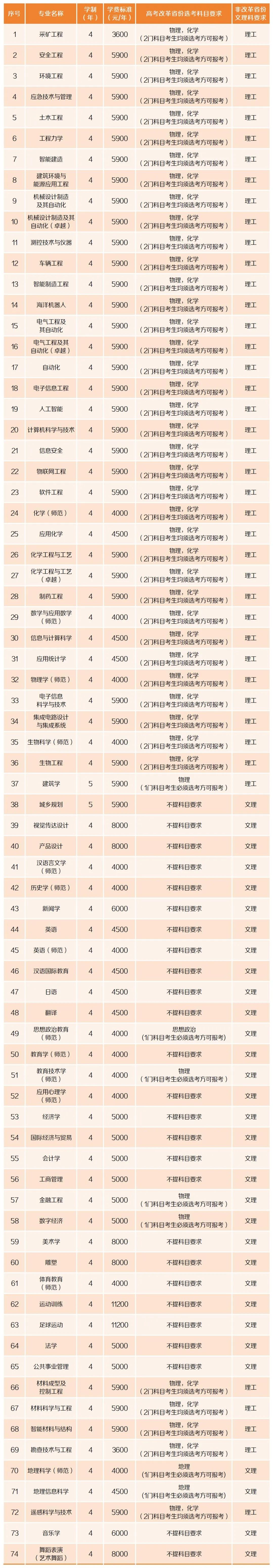 具体在各省的招生专业及相关科类,待我校分省分专业计划确定后,以各省招生考试机构公布的为准。学校实行学分制收费,学费由专业学费和学分学费两部分组成。学费总额为上级主管部门批准的学费标准,具体收费标准依据相关政策和上级部门批文制定的文件为准。