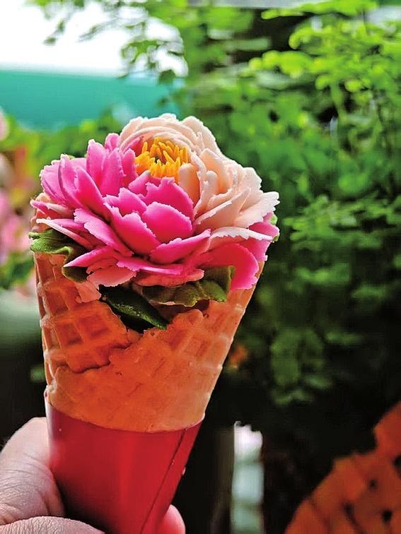 薄如蝉翼的花瓣纹路细腻,被华夫筒稳稳擎住,娇嫩粉与柔和橙相映生辉,一朵逼真的立体二乔牡丹“绽放”……今年洛阳牡丹文化节期间,龙门文创院的牡丹文创冰淇淋成为新晋“顶流”,引来年轻人争相打卡拍照。这朵“舌尖上的牡丹”的设计师林英,是来自福建的创业青年,自称“洛阳粉丝”的她,希望通过自己的巧手,让更多人爱上洛阳。