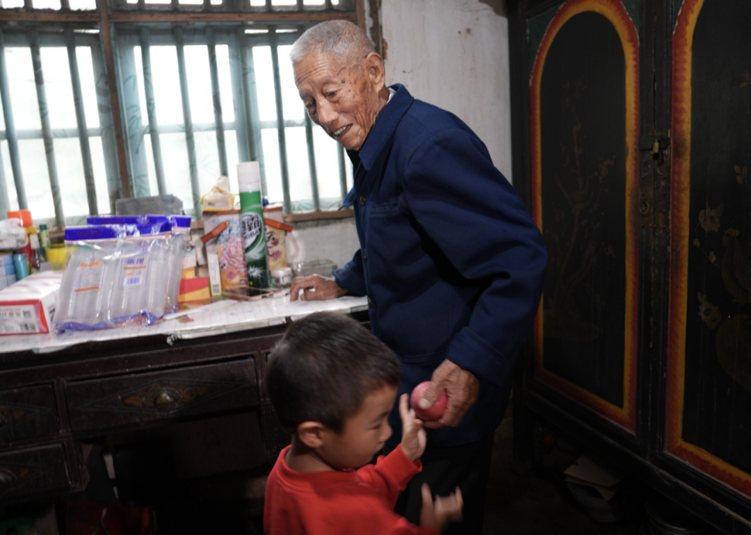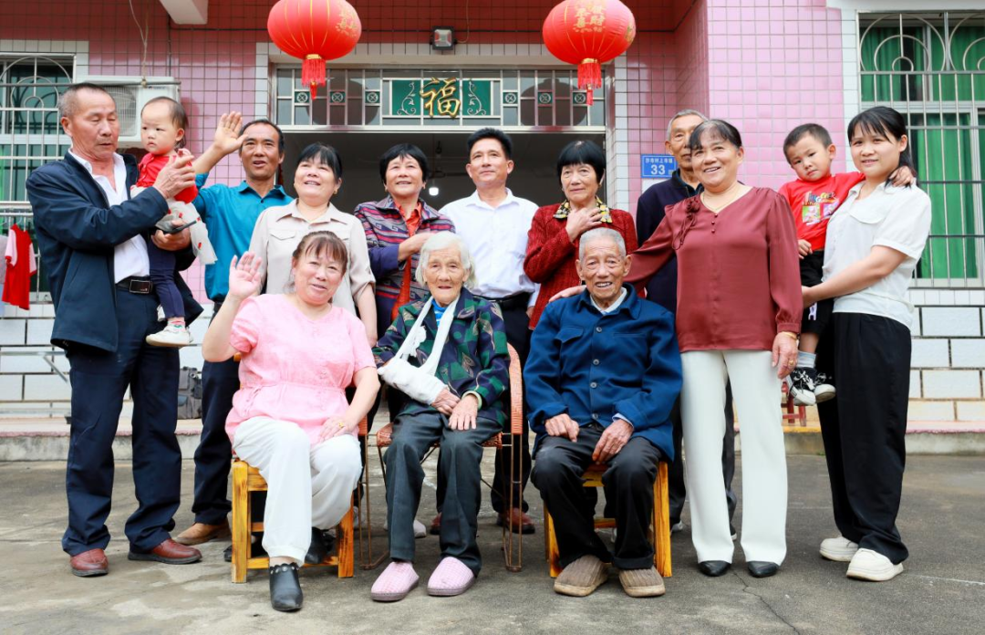 “以前80多岁的时候,邓老都要赶牛耕田,一点都不服老。都说老黄牛默默耕耘,邓老面朝黄土背朝天,泡在泥巴里的日子,一年怕是有一半。”谈起勤快,邻居陈老伯自叹不如,“我们周围邻里也是受他影响,大家做起事来都耐得住烦、静得下心。”而在家族微信聊天群里,日常分享的也不是大家以为的养生链接,而是具体而细微的生活片段:曾孙的作文成绩、菜园里新结的果子……这种平常的互动就像抵御岁月侵蚀的堡垒,让辛勤劳动、知足常乐的生活理念在家族的每个人身上沉淀。