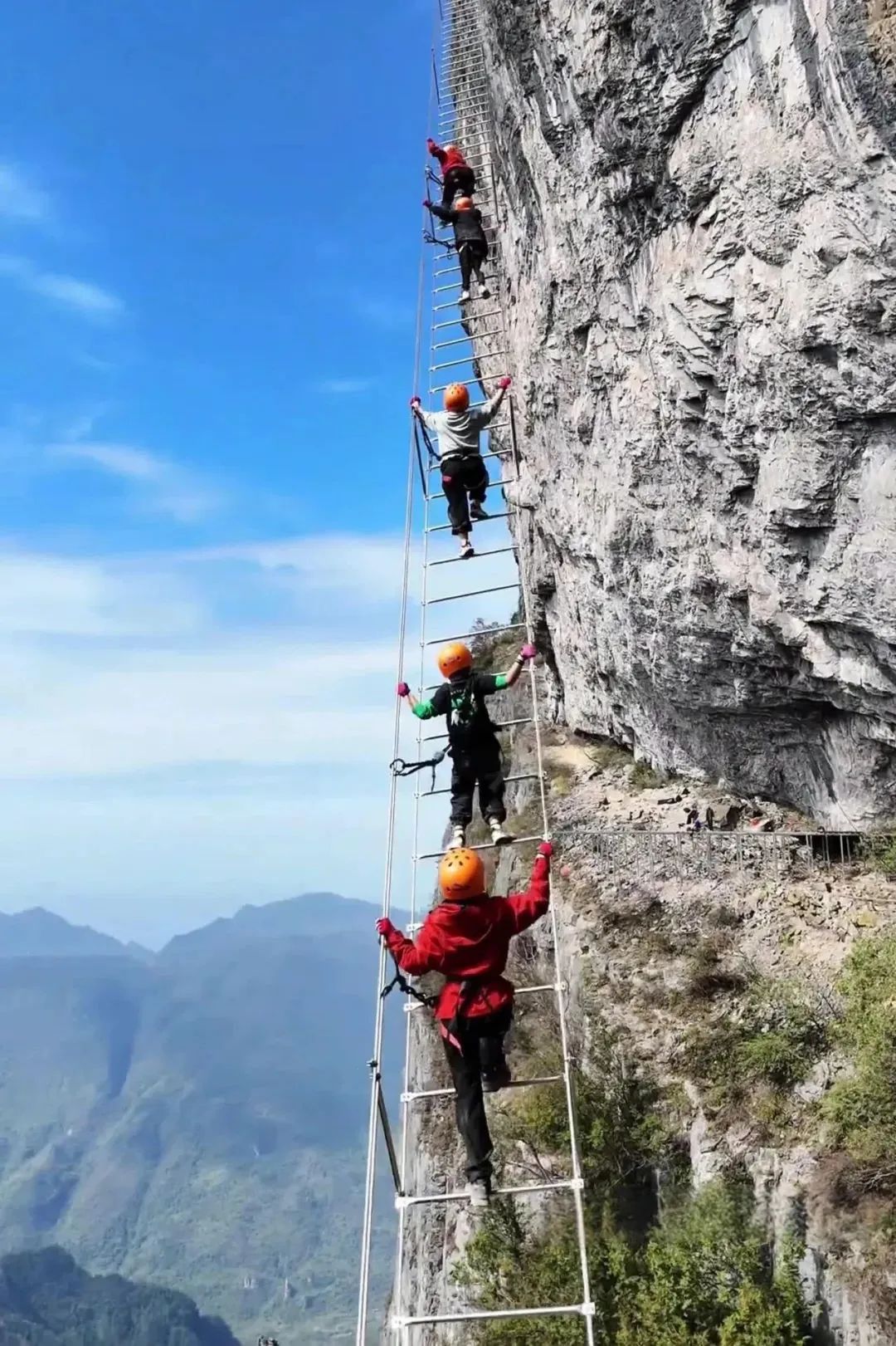 “绝壁天梯”位于石牛寨景区海拔520米的绝壁之上,全长300米,垂直落差达260米,由专业户外团队精心设计,所有攀登设备都经过严格检测。游客攀登前,会有专业教练进行详细的安全讲解和操作指导,参与者全程配备安全带、头盔、主锁等专业装备。