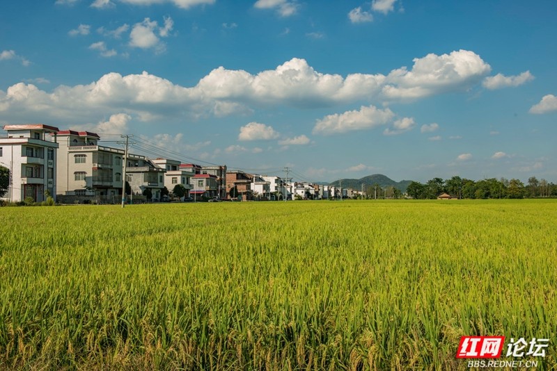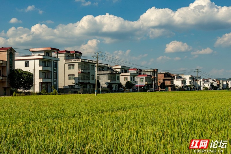 稻田映新景,老房诉旧年。(图源:红网论坛@花滩河边)