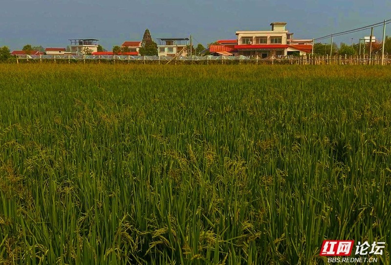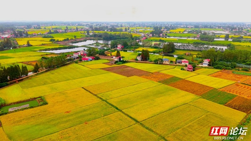 深柳镇华南新村金黄的田野。(图源:刘华斌)