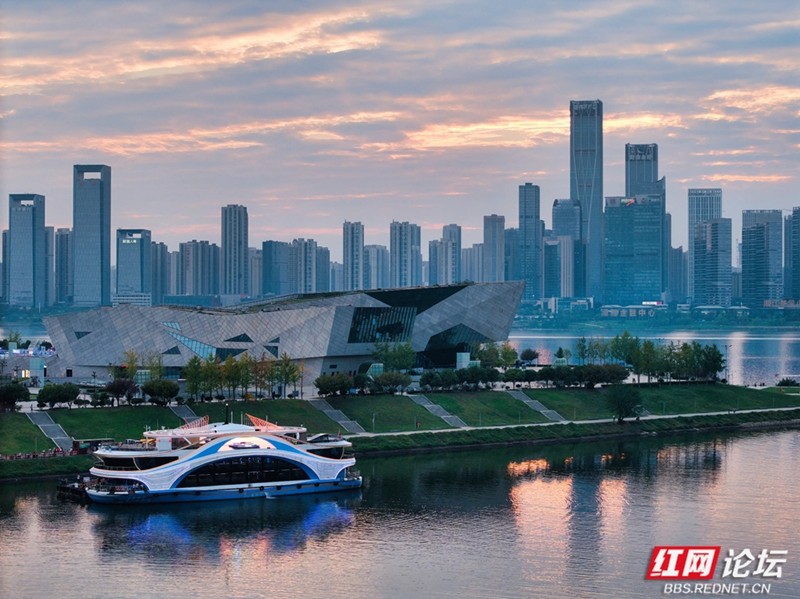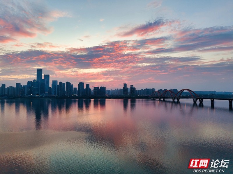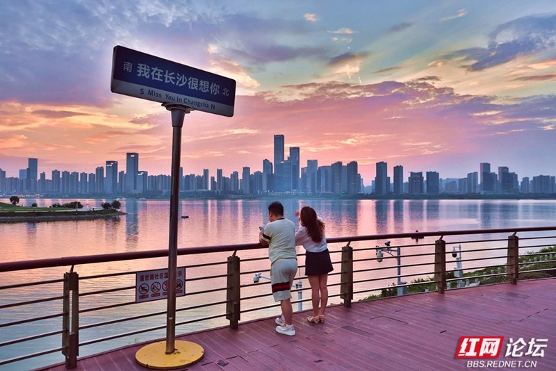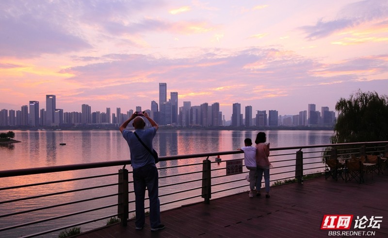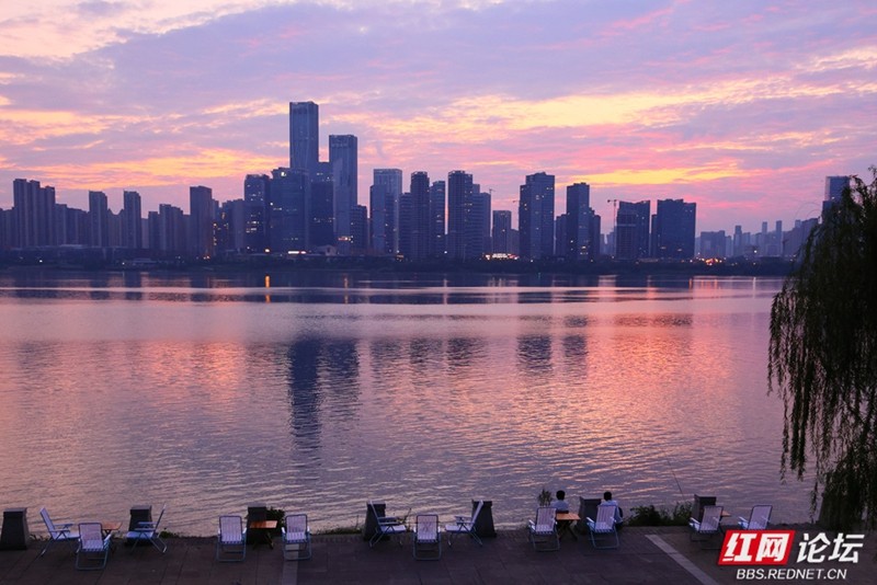粉紫与橙红之间,是湘江的浪漫时分。(图源:王德璠)