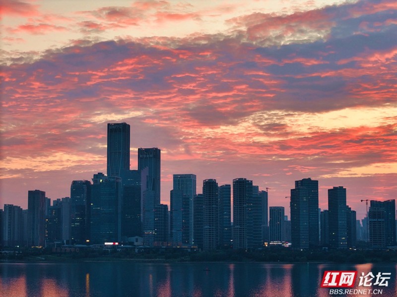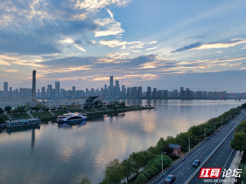 10月2日傍晚,长沙湘江之上,晚霞宛如梦幻的调色盘,将天空与江面晕染成一幅流光溢彩的画卷。粉紫与橙红交织的云霞,如轻盈灵动的绸缎飘舞天际,又悄然倒映在澄澈如镜的江面,波光潋滟,幻影浮动。对岸高楼林立,江畔游船轻荡,与绚烂天光交相辉映,勾勒出一幅现代与自然交融的诗意图景。人们驻足凝望,或举起手机定格瞬间,在这醉人暮色中,静静感受长沙独有的浪漫与静谧。(图文/王德璠)