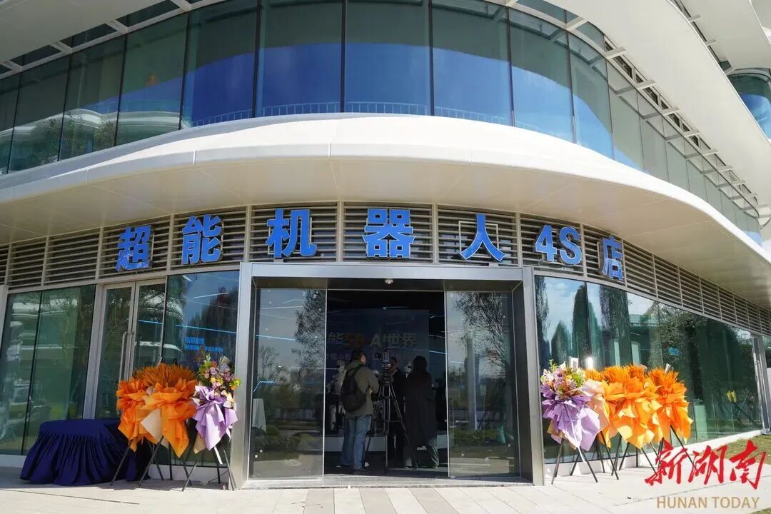 这家店由湖南超能机器人技术有限公司旗下子公司运营,划分为智慧康养、智能制造、智慧园区等多个实景区域,每个区域有不同类型的机器人在真实工作。店内,中医机器人可“把脉问诊”,维修机器人在熟练地拧螺丝,机器人乐队弹奏着乐曲。店外,保洁机器人进行清扫作业,保安机器狗则执行巡检任务。