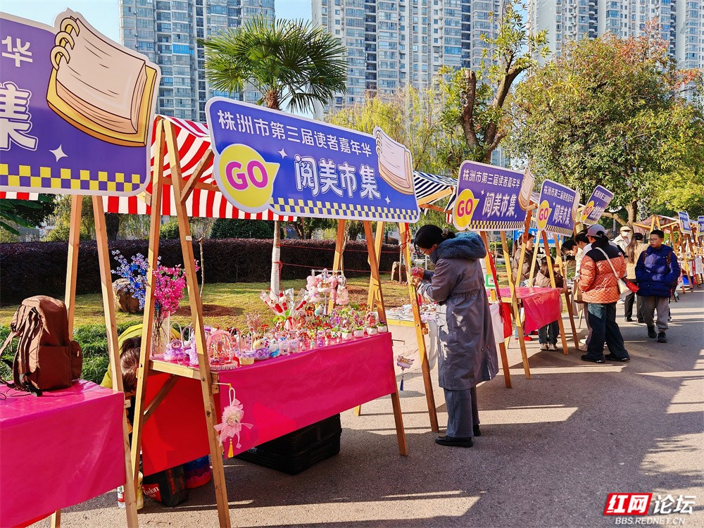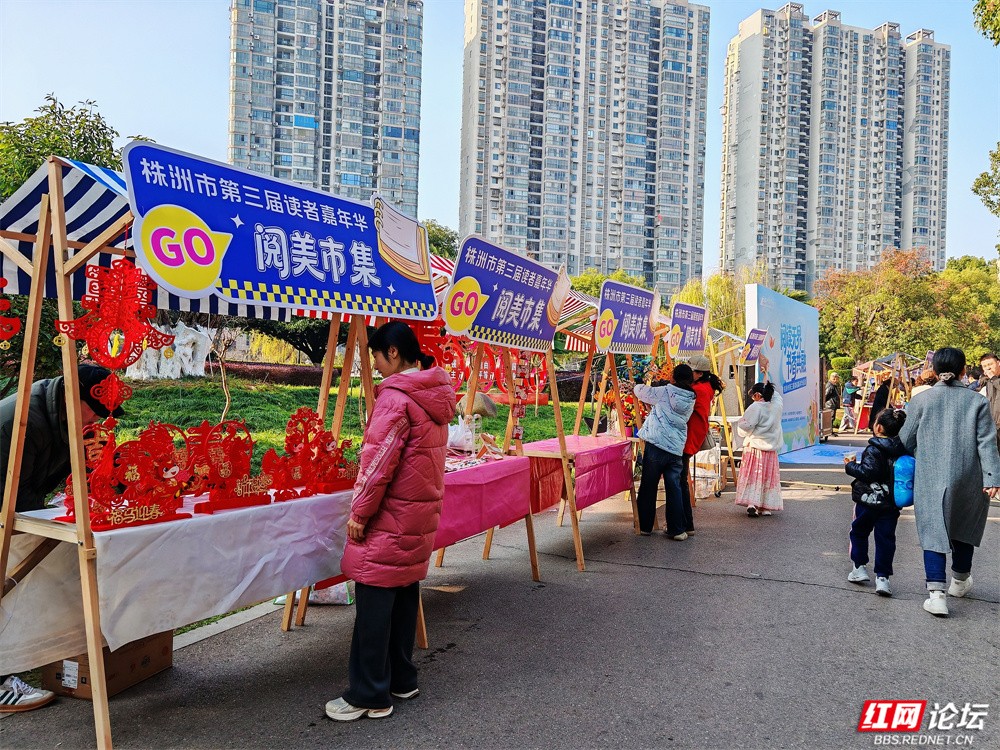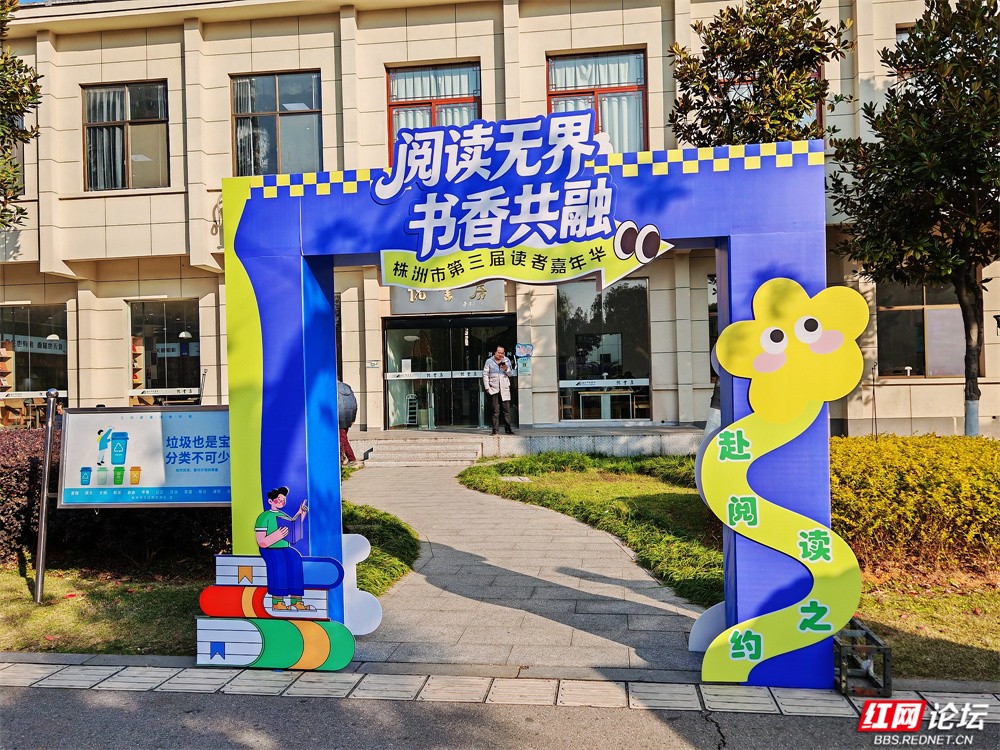 阅读无界,书香共融。株洲市第三届读者嘉年华如约而至,一场融合阅读、创意与生活的文化盛宴在图书馆前坪温暖展开。蓝绿相间的拱门下,人流穿梭,阳光透过枝叶洒在热闹的“阅美市集”上,手作、书摊、互动体验一一排开,处处洋溢着书卷气与烟火气。