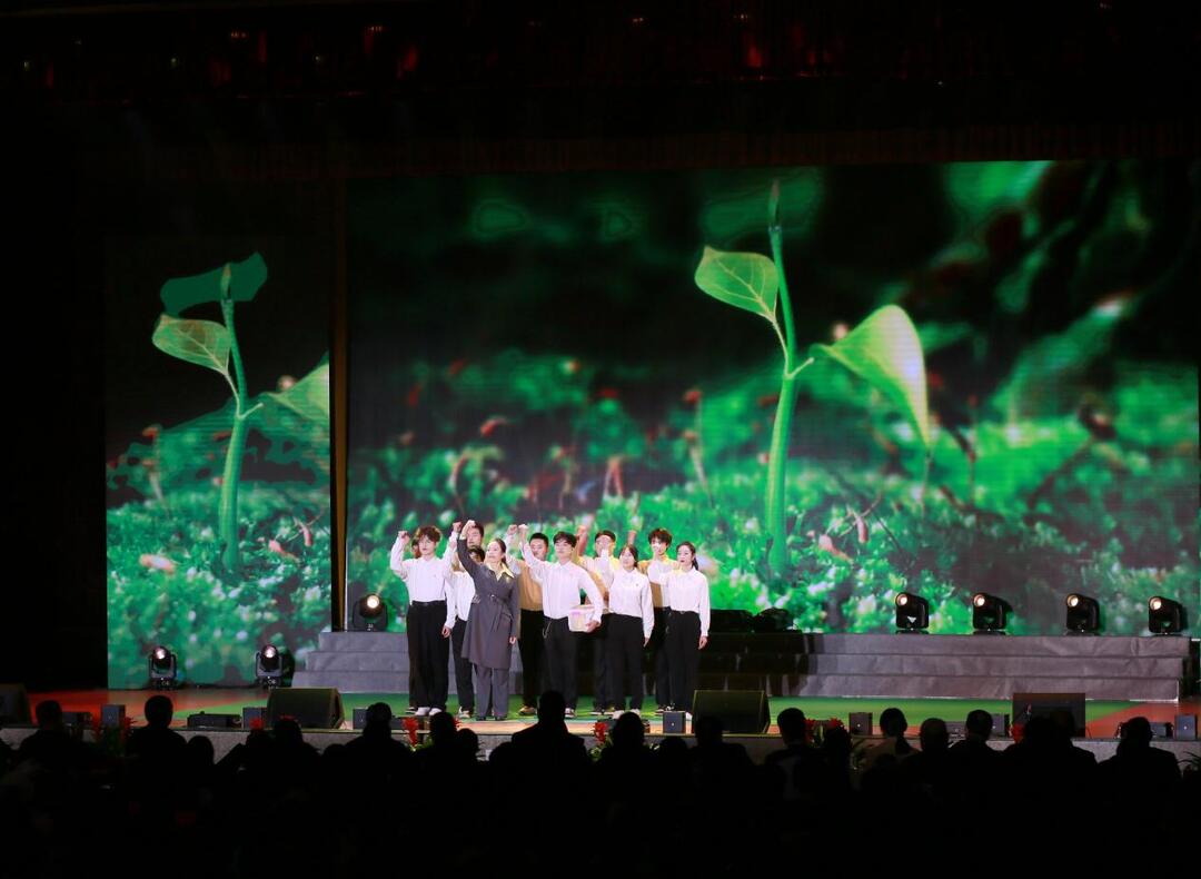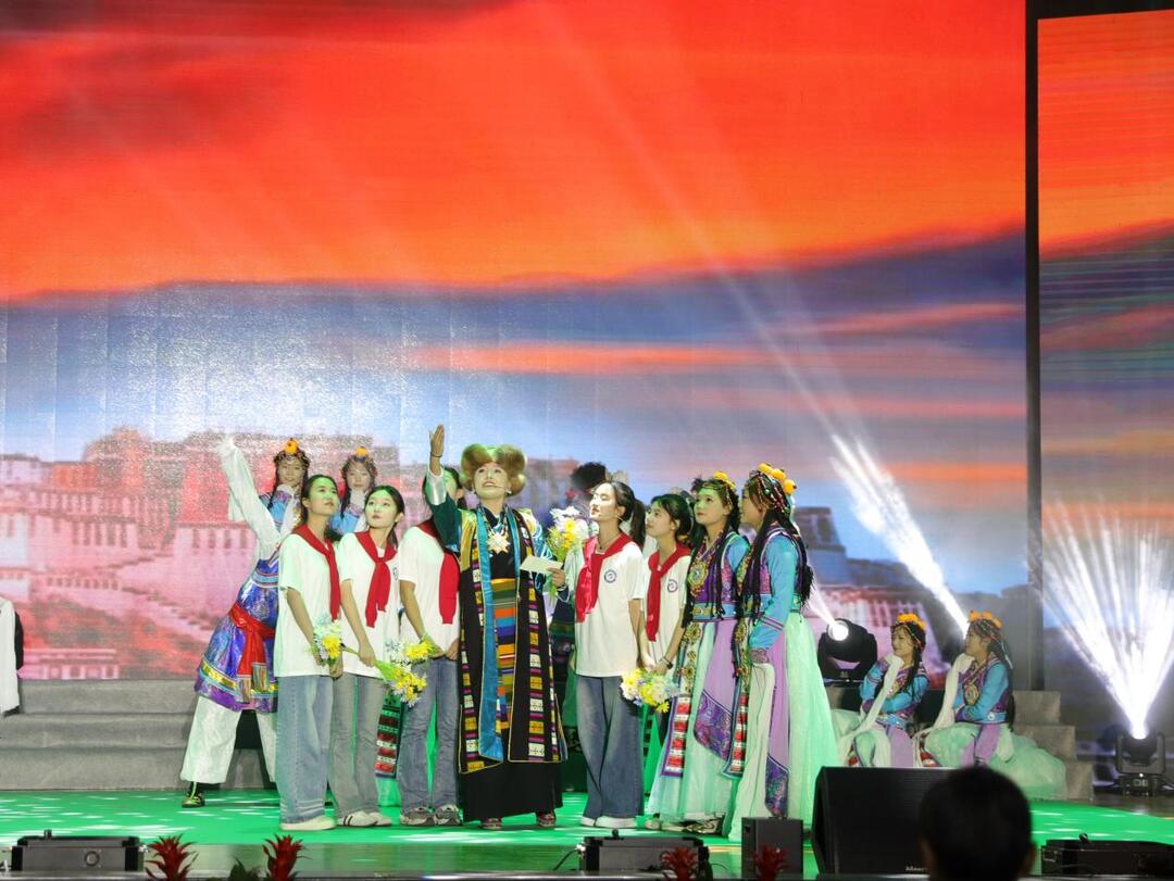 晚会以“融合”为关键词,匠心独运地将思想政治教育核心要素嵌入文化艺术载体与专业展示环节。情景剧《雪域花与故土初心——邵阳之子钟扬的“种子人生”》深情演绎了杰出科学家钟扬跋涉高原、收集种子的感人事迹;非遗+思政展示《花瑶挑花》不仅展示千年民族技艺,更让铸牢中华民族共同体意识教育在具象的美学体验中悄然浮现;技能情景秀《专业里的家国担当》与朗诵《邵职学子的专业日记》,将课堂与实训室搬上舞台。学子们用专业语言,讲述如何将理论知识转化为解决实际问题的能力,诠释了“技能成才、技能报国”的时代内涵;藏族学生带来的舞蹈《青春工匠路》,将民族风情与奋斗激情融为一体,展现了各民族学子共学共进、同心筑梦的生动图景。优秀校友代表的现场分享与云端祝福,则勾勒出从“青涩学子”到“行业骨干”的成才轨迹。晚会最终在《强国一代有我》《我的祖国》的激昂合唱中达到高潮。