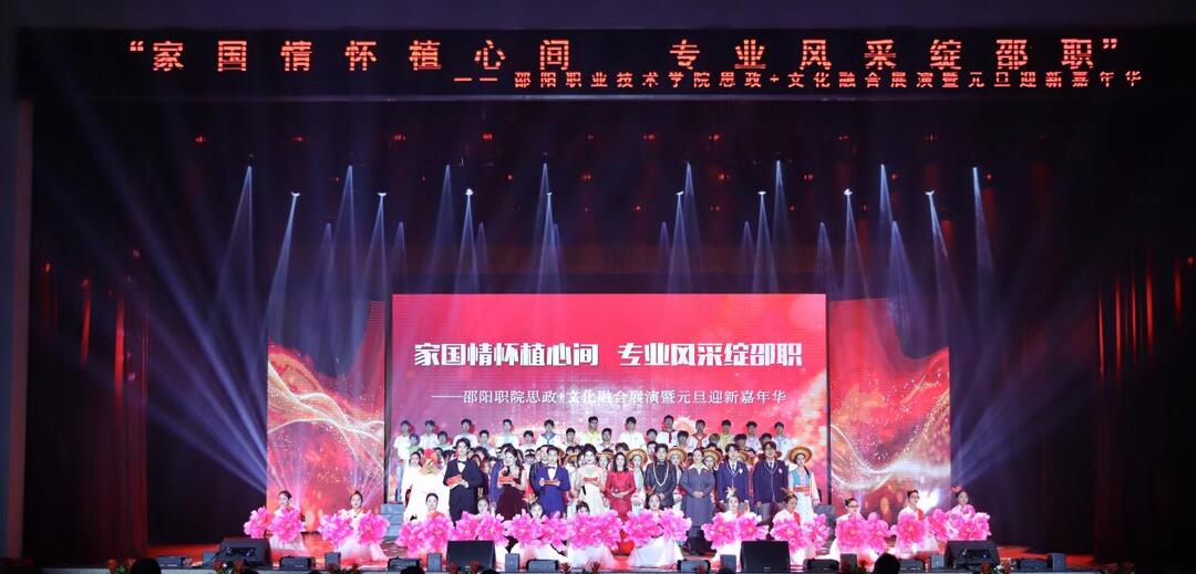 灵蛇献瑞辞旧岁,骏马奔腾启新程。12月30日晚,邵阳职业技术学院“家国情怀植心间·专业风采绽邵职”思政+文化融合展演暨元旦迎新嘉年华活动在文体馆如期举行,学校党委书记邓政,校长许洪范出席活动。全体在校领导及1800余名师生齐聚一堂,共同迎接充满希望的2026年。