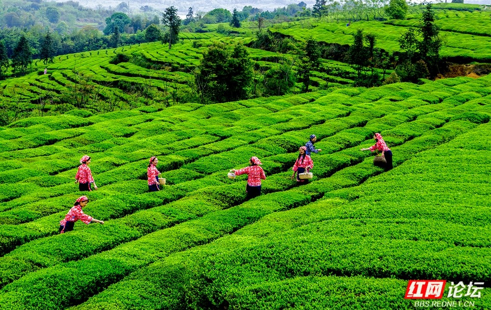 湘地春浓:油菜花海翻金浪,茶田叠翠漾生机。(图源:蒋新建)