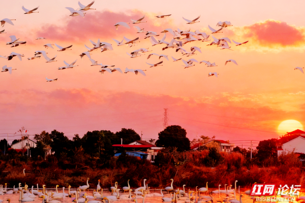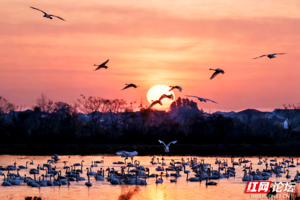 随着生态环境持续改善,屈原管理区东古湖鸟类栖息湿地公园日益成为珍禽云集的生态天堂。白鹭翩跹起舞,白鹤流连忘返,天鹅年年如期而至,绘就一幅和谐灵动的自然画卷。(图/文:刘太平)
