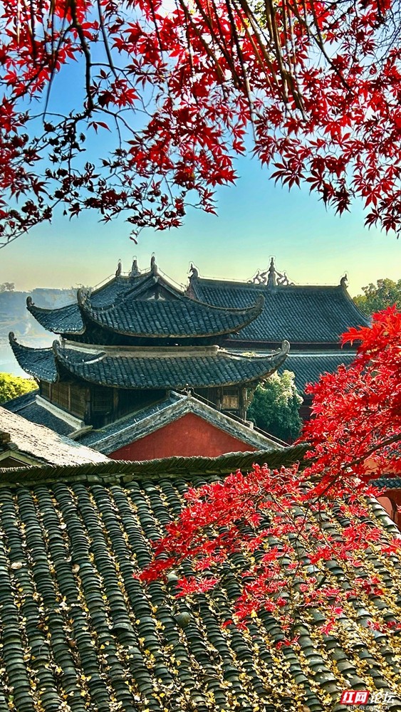 2025年12月1日,冬阳和煦,轻柔地铺洒在沅陵的千年古刹——龙兴讲寺。寺内,红墙静立,黛瓦含光,与漫天金黄的银杏、似火燃烧的丹枫相映成画。飞檐翘角处,仿佛仍回荡着唐宋遗风;古殿雕梁间,幽幽浸润着梵呗的温润余韵。慕名而来的游人穿梭在这时光织就的肌理之中,将这一方初冬的宁静禅意,酿成眼底流动的、温暖的人间烟火。(图文/杨家深)