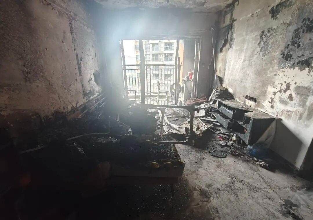 消防员到场后迅速展开行动,攻坚小组利用室内消火栓铺设水带,压制火势蔓延;搜救小组对着火楼层及相邻楼层展开搜救,在起火住宅对面的住宅发现一名被困住户,随即护送其沿疏散楼梯安全撤离至地面。