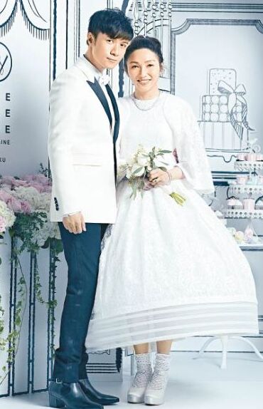 据香港媒体报道,43岁古巨基去年7月跟46岁的助手妻子陈韵晴(Lorraine,前名陈英雪)在美国注册结婚,相隔一年多,昨日“11 11”光棍节在四季酒店补摆喜酒,约六百位好友到场祝贺,包括英皇集团主席杨受成伉俪、容祖儿、Twins、古天乐、吴君如、林峯、陈豪及大肚妻子陈茵媺、李克勤、张敬轩、莫文蔚、邱淑贞及大女沈月等人,星光熠熠!婚礼以酒会形式举行,场内布置浪漫,基仔悉心打造童话式婚礼,为妻子留下难忘的回忆!手拿白色花束的新娘子Lorraine婚纱款式密实,足踏小白袜十分娇俏,身上钻饰价值8000万元,7.12克拉巨钻是寓意两人在去年7月12日注册结婚。