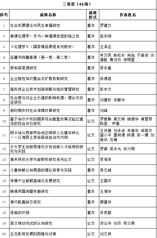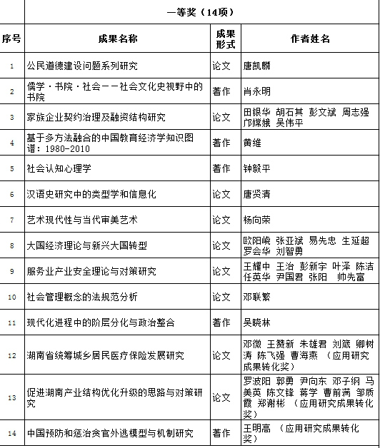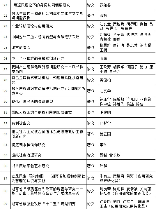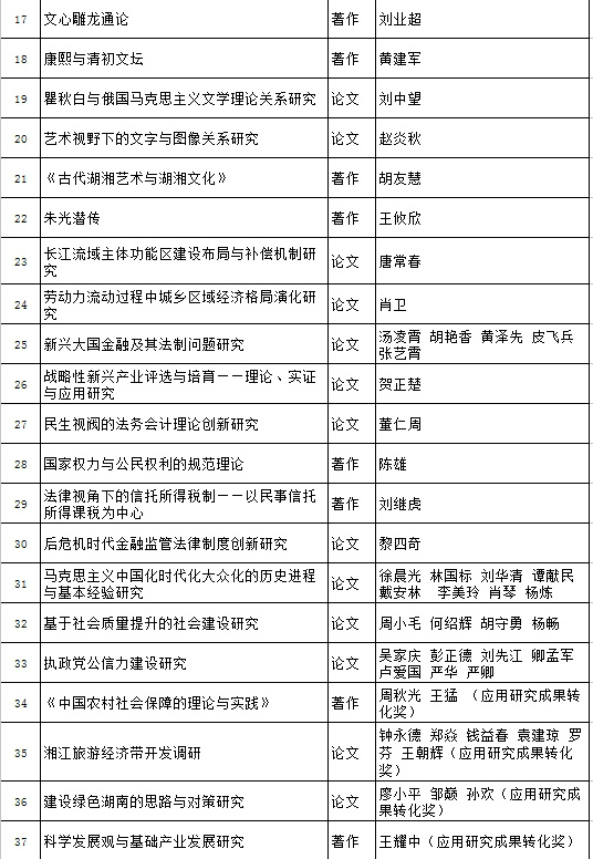 1.《第十二届湖南省社会科学优秀成果奖获奖项目及作者名单》