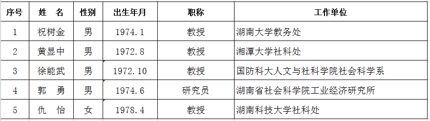 2.《第五届湖南省优秀社会科学专家和第三届湖南省优秀青年社会科学专家名单》