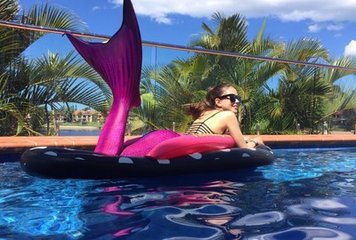 1月6日,昆凌在微博晒出一张扮成美人鱼的照片,并打趣称:“Getting suntan in a mermaid suit(穿着美人鱼装被晒黑)。”照片中,昆凌趴在泳池里的气垫上,下身穿紫色美人鱼“鱼尾装”,上身着镂空背心大秀美背,她还戴着墨镜,造型时尚。