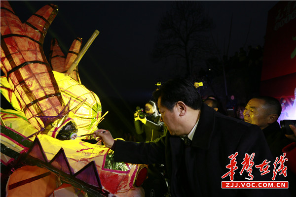 县委书记邱初开、龙潭河镇党工委书记向平华为板板龙灯点睛李泰忠辉 蒋兆威摄