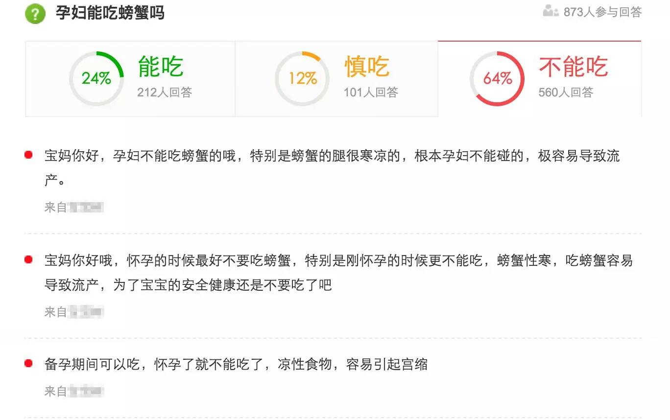 ▍网络上关于怀孕期间能否食用螃蟹的论述