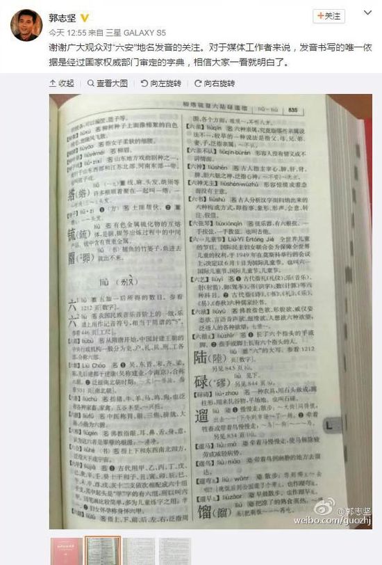 有人说应遵照约定俗称的习惯读(lu)才对,该男主播则搬出现代汉语词典回应:“对于媒体工作者来说,发音书写的唯一依据是经过国家权威部门审定的字典”。