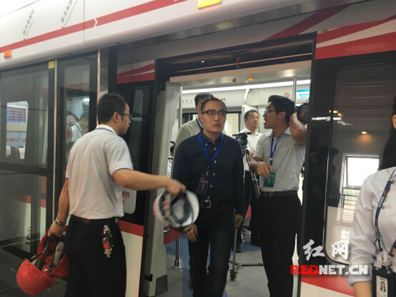 时刻新闻记者随建设者代表登上磁浮首发列车,体验磁浮之旅。