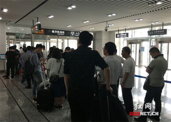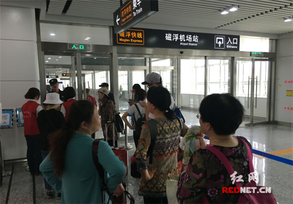 磁浮快线机场站排队秩序井然 岳阳三姐妹“尝鲜”