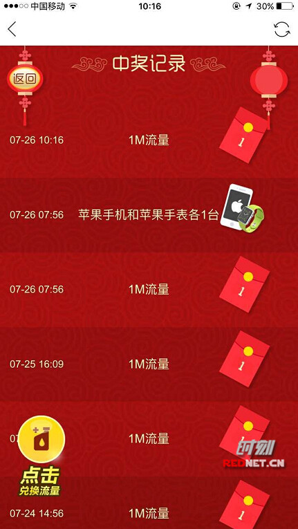 “中奖那天我记得是早上七点多手机响了跟平时一样看完推送新闻拆红包。”连拆了三个红包的欧女士中了1M手机流量。第四个红包突然弹出了“苹果手机和苹果手表各一台”的字样。当时她虽然有点小激动但仍然不敢确认。发微信到好友群,大家反应出奇的一致“怎么可能?”欧女士正在创业筹备阶段,脚踏实地的性格让她并不太相信“幸运”这档子事儿,继续拆第五个红包“你看天上有大奖在飞~”。