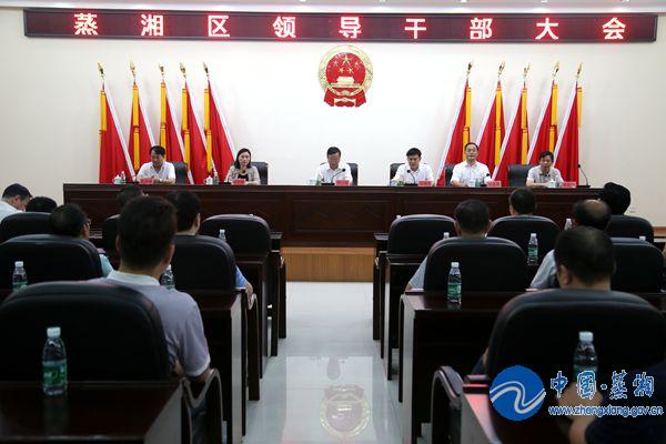 8月1日上午,衡阳市蒸湘区召开全区领导干部会议。衡阳市委常委、政法委书记邓柯宣读了省、市委决定,袁谷平同志任中共衡阳市蒸湘区委副书记,提名为蒸湘区人民政府区长候选人;林喜洋同志不再担任中共衡阳市蒸湘区委副书记,提名免去蒸湘区人民政府区长职务。