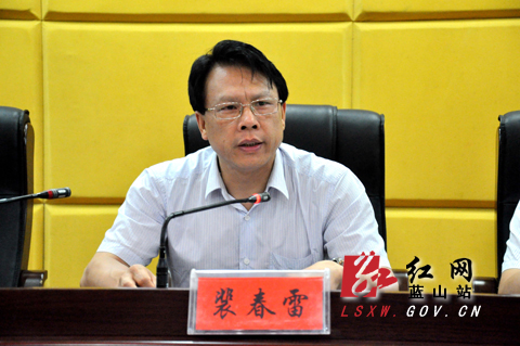裴春雷在讲话中指出,这次关于蓝山县委、县政府主要领导调整的决定,是省委和市委着眼蓝山县领导班子建设的实际需要,经过反复酝酿、集思广益、认真研究后作出的,是十分慎重的、符合实际的。近年来,在市委、市政府的正确领导下,在以何冲龙同志为班长的县委一班人的带领下,蓝山县广大党员干部团结干事,开拓进取,主动干事,积极作为,狠抓民本民生,群众获得感不断增强,全县社会和谐稳定、人民生活安康,蓝山的经济和社会各项事业得到了又好又快发展。这些成绩的取得,是县委、县人大、县政府、县政协几套领导班子真抓实干的结果,是全县各级党组织和广大干部群众团结拼搏的结果。