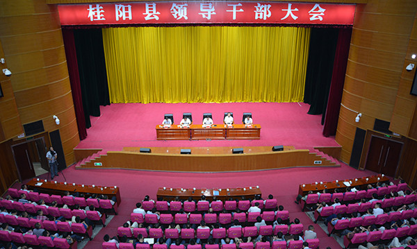 8月5日,桂阳县领导干部大会召开。受市委委托,郴州市委组织部常务副部长张军宣布省委、市委人事任免决定:彭生智同志任中共桂阳县委书记,不再担任中共郴州市苏仙区委书记职务;欧阳锋同志不再担任中共桂阳县委书记职务,另有任用。市委副书记龚凤祥出席会议并作重要讲话。欧阳锋同志和新任县委书记彭生智同志分别作讲话。县委副书记、县长黄四平主持会议。