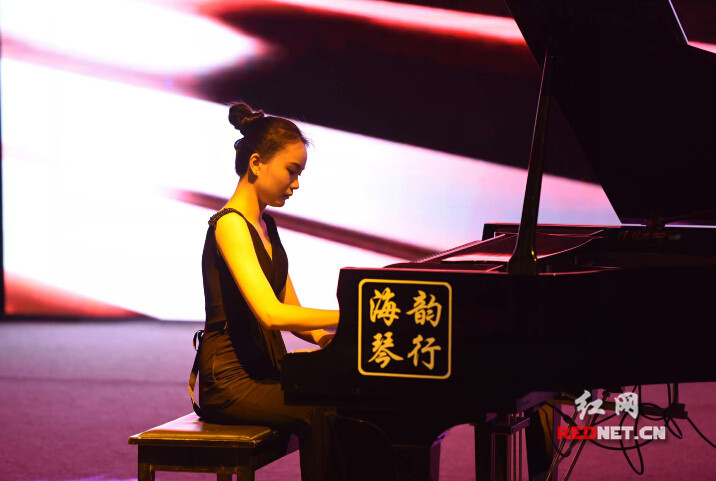 在“新长征路上”红网大型扶贫系列活动全媒体报道启动仪式上,走出国门的沈诗哲现场演奏了钢琴曲目《焰火》。