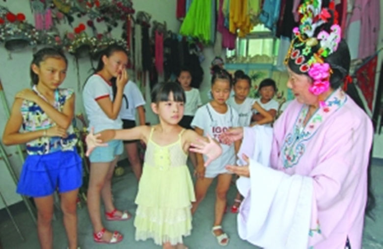 8月17日,花垣县花垣镇吉场村,孩子们在认真学习汉剧表演。今年暑假,该县边城汉剧团在该村免费办班培训孩子学习汉剧表演,传承汉剧文化。汉剧培训班成为当地孩子的暑期文化乐园,每天有10多名热爱汉剧表演的孩子前来学习。