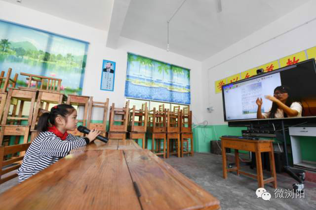 长沙咸嘉湖小学的老师通过网络联教为张秋香上音乐课,她积极地跟着视频另一端的老师哼唱着歌曲。