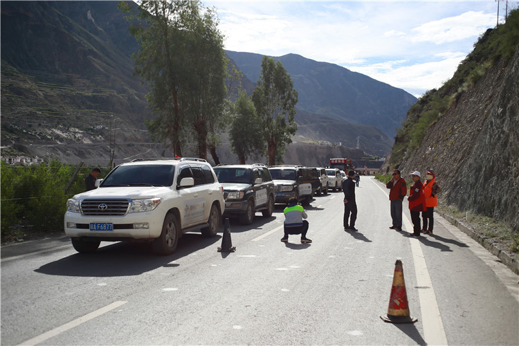刚从香格里拉出发,就遇到了塌方,道路被堵住。