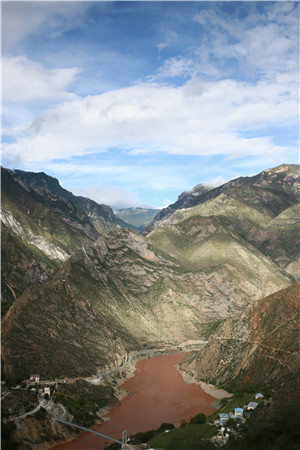 金沙江上游在川藏和川滇边界。植被稀少风化严重的地区,任意一处下雨会立刻把大量沙土冲入金沙江,江水就会变黄或变红。