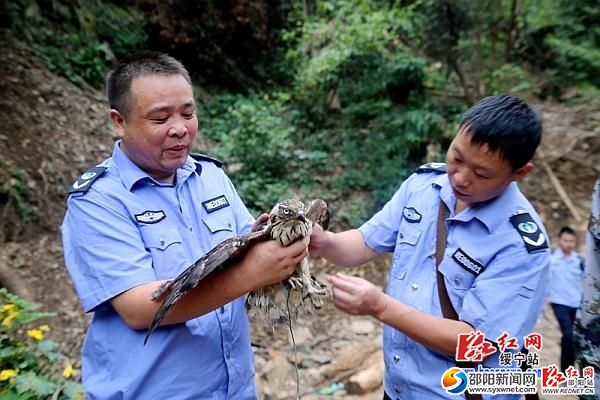 绥宁县林业工作人员对它进行了简单救治后将其放归山林。