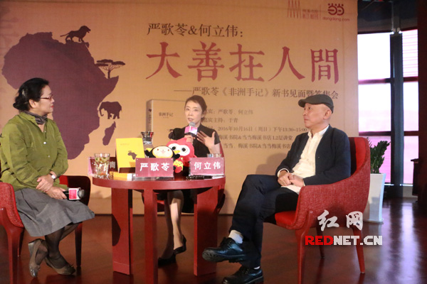 红网长沙10月16日讯(记者 王嫣)“《非洲手记》是我这一生唯一出版的手记。”今天下午,著名作家严歌苓带着她的最新作品《非洲手记》,在梅溪书院举行了新书见面会暨签售会,与长沙读者分享了她的游走心得。著名作家、长沙市文联主席何立伟作为对谈嘉宾来到现场,两位文学“大咖”围绕着“大善在人间”的主题,展开了一场触碰人性,直抵内心的精彩对谈。本次活动由人民出版社副总编辑、作家于青主持。