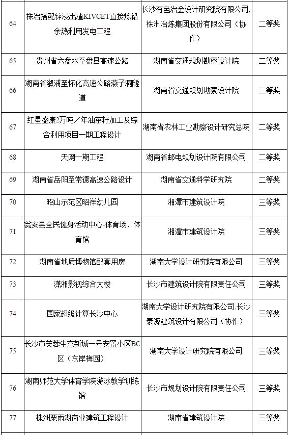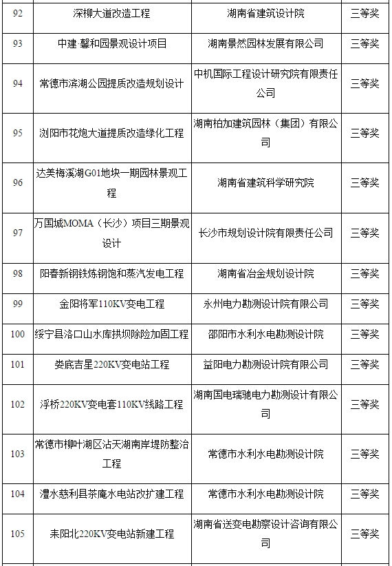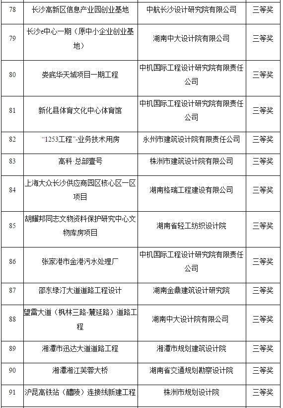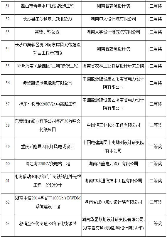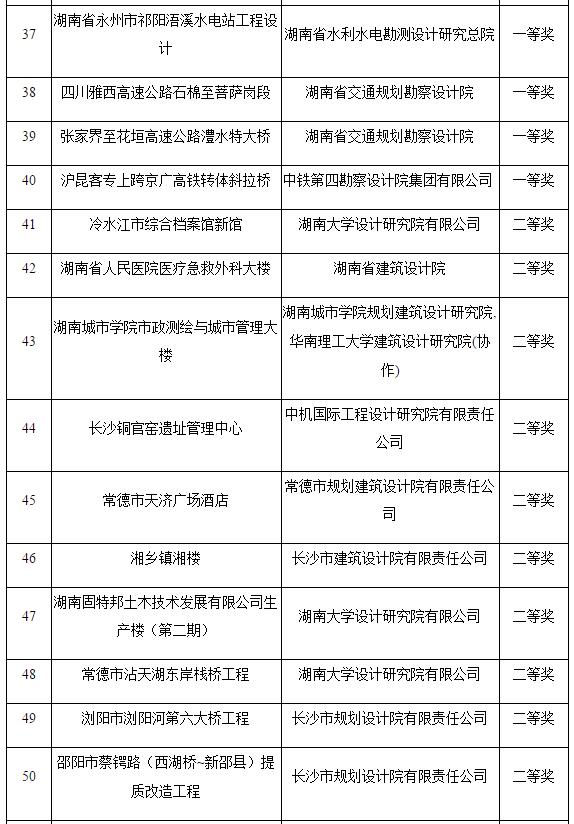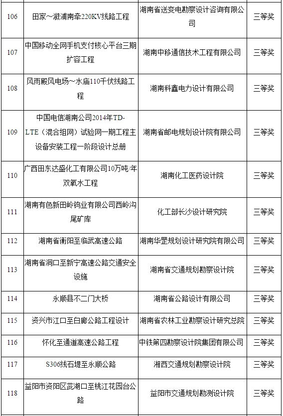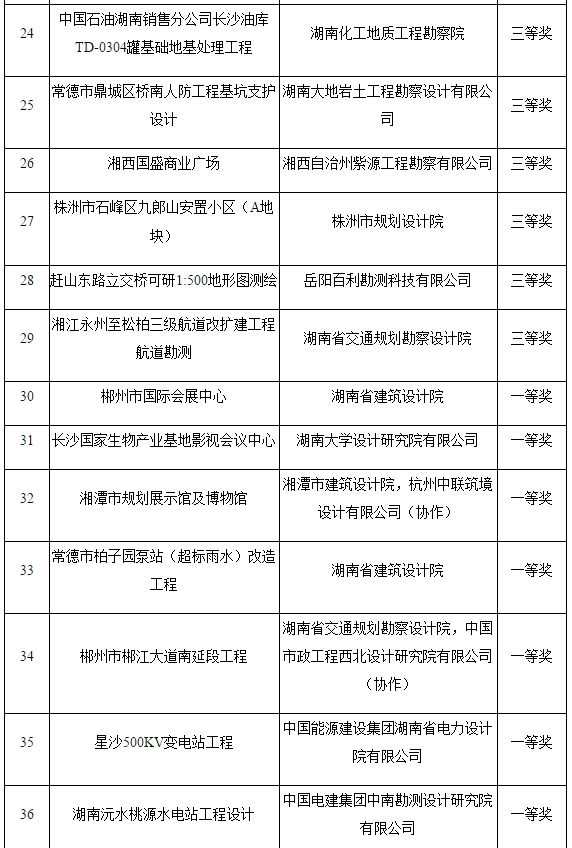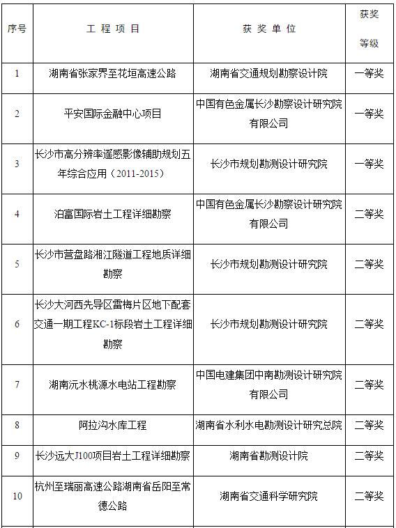 附:2016年度湖南省优秀工程勘察设计评选结果汇总表(排名不分先后)