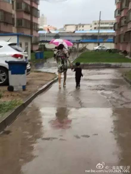 更有网友po出亲妈带孩子打伞的图片↓↓