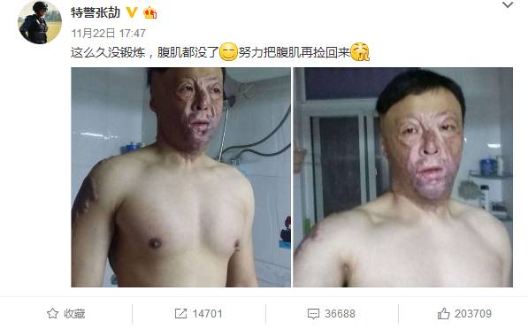 滚滚圆球君:看到您一条条的回复,很感动,谢谢像你一样的英雄一直在身边默默保护着我们我最亲的家人也是警察,他在工作中经常不被人理解,谢谢您让全国人民看到了中国警察英勇无畏,正义凛然的本色形象!祝您早日康复!